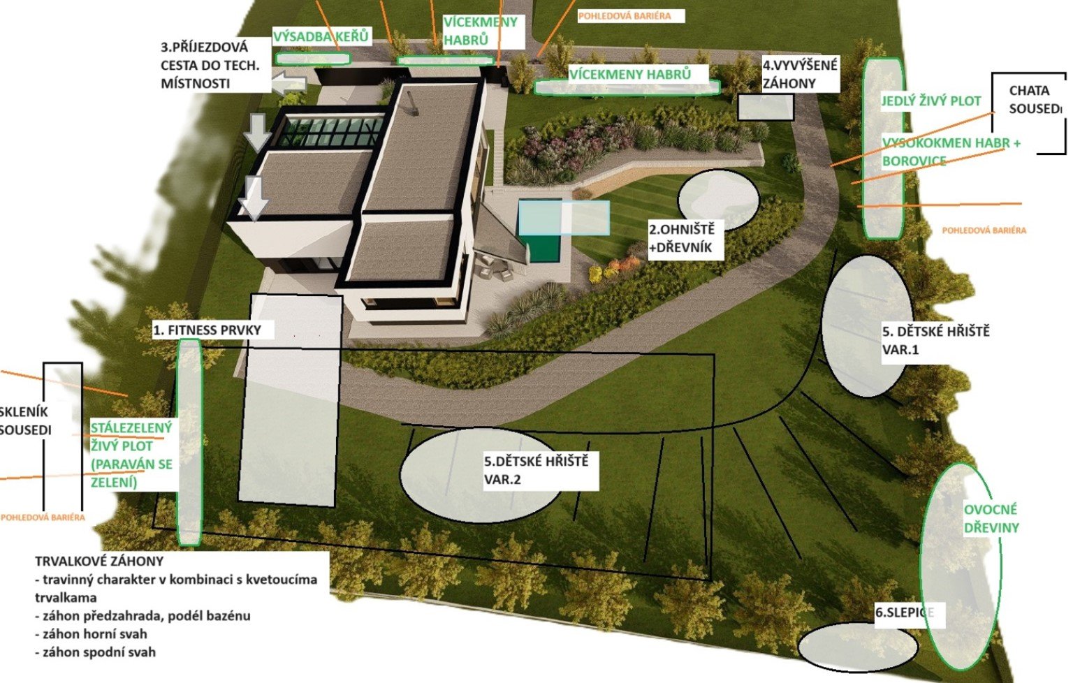 Zahrada u moderní vilyZpět Název: Zahrada u moderní vilyLokace: HranicePopis: Zahrada u moderní vily s velkým převýšením pozemku. Důraz byl dle požadavku klienta kladen na využití svahu, sportovní vyžití a jedlou zahradu.Zahrada u vily - HraniceZahrada u vily - HraniceZahrada u vily - Hranice